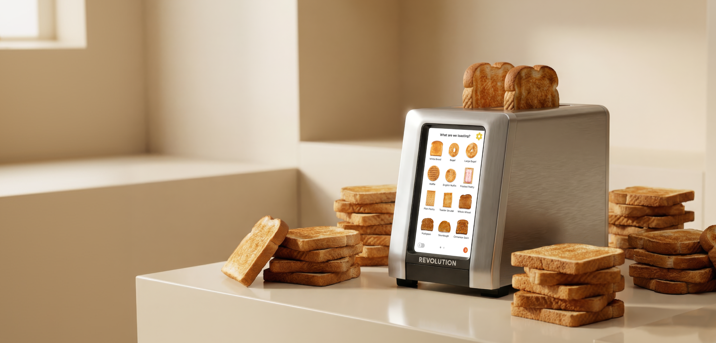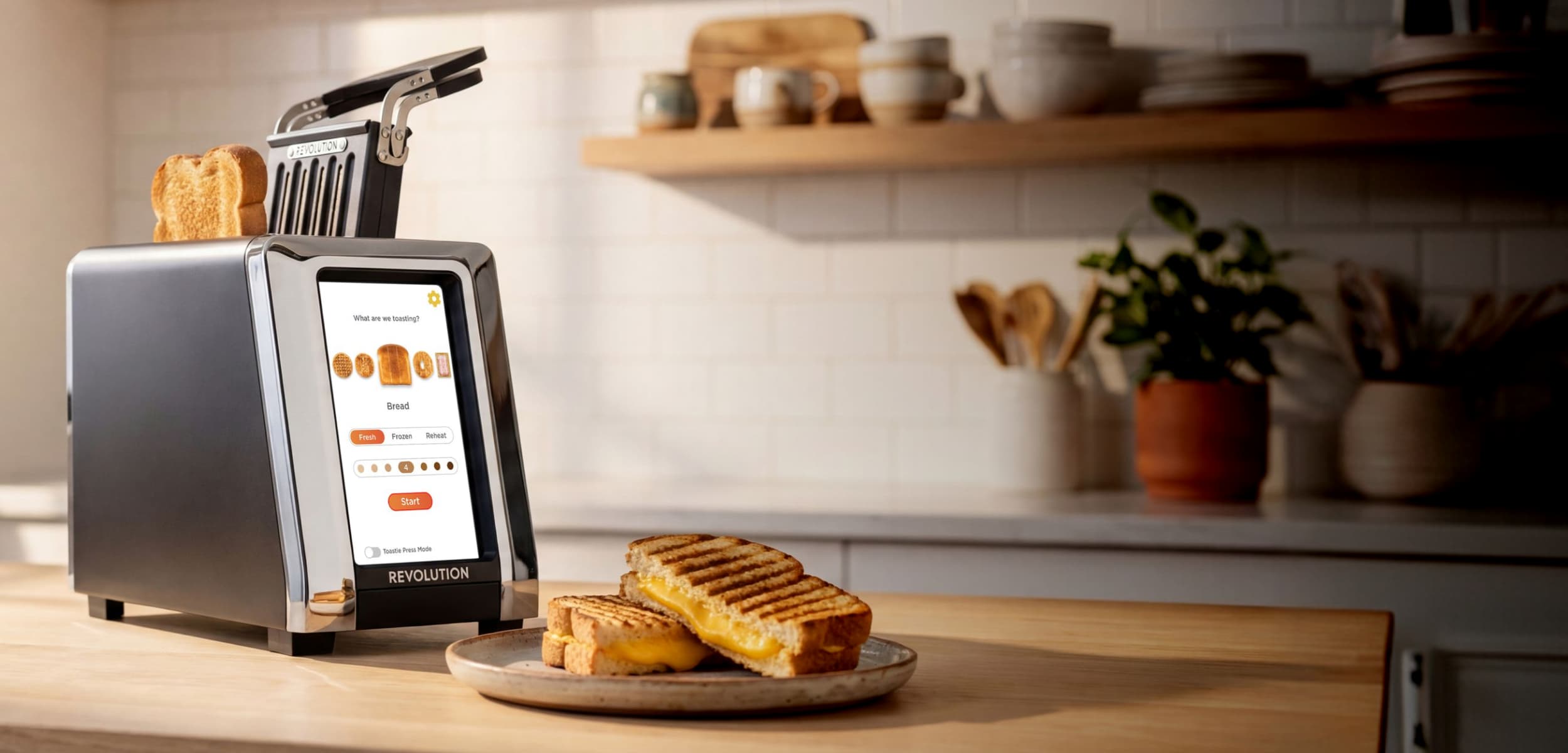 Toasting algorithms for dozens of specific bread types, with sensors that adjust in real time, to make toast, bagels, waffles and paninis exactly the way you want them.