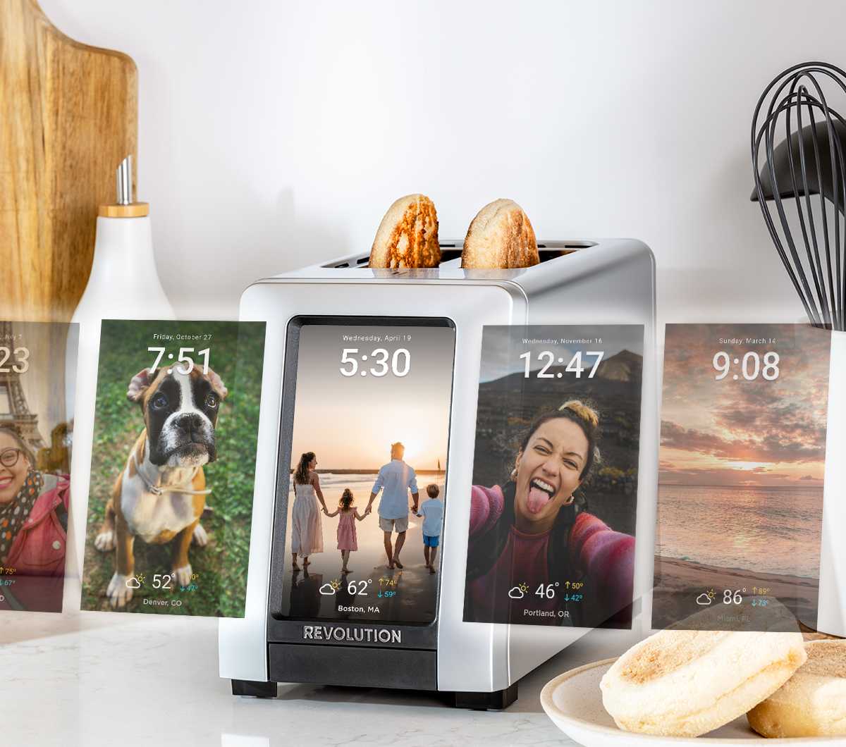 - A Smarter Countertop Experience: Wi-Fi connectivity automatically sets your time and date, displays the local weather, and keeps your toaster up to date. When idle, the screen doubles as a digital photo frame, cycling through your favorite images.